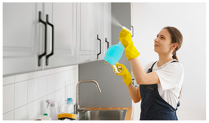Genel temizlik hizmetinin içeriğine ilave olarak tüm cam, kapı, dolap içi ve duvar fayanslarının hassasiyetle temizlenmesi.